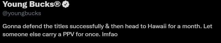The Young Bucks let fans know about a “new bio” update, and they had a lot to say. After they successfully defend the AEW Tag Team Titles, the two claim that they are going to Hawaii for a month to blow off some steam.