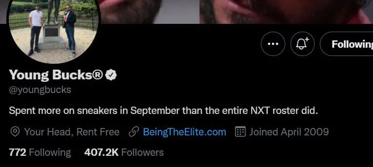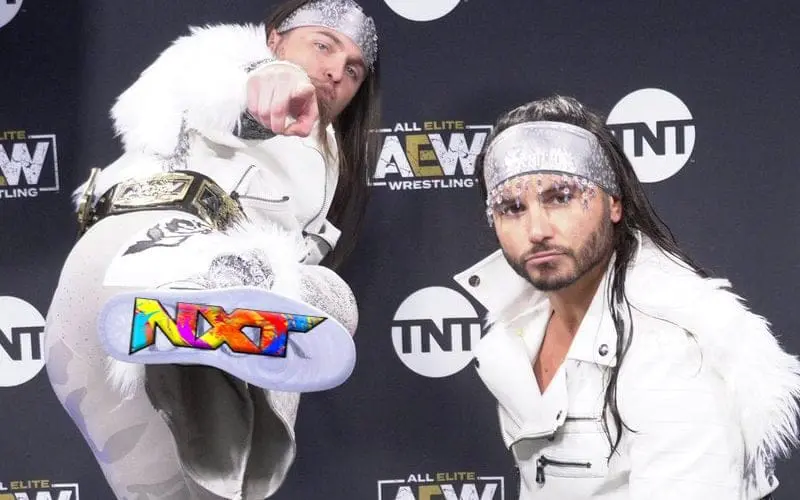 The Young Bucks are known for their expensive sneaker collection. They are also famous for updating fans on their progress via editing that Twitter profile bio. This happened once again tonight and the NXT locker room’s sneaker game took a shot in the process.