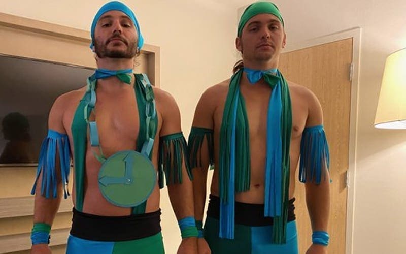 The Young Bucks’ Twitter account then sent off a reply showing the Jacksons dressed up like FTR would have been forced to dress if they stayed in WWE. Those outfits were previously worn during a Being The Elite sketch.